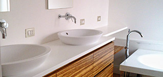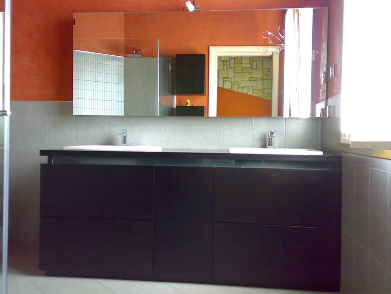 Gli arredi per bagni realizzati dalla Falegnameri K, si distinguono dalla massa per il pregio delle finiture e la sobrietà delle linee.